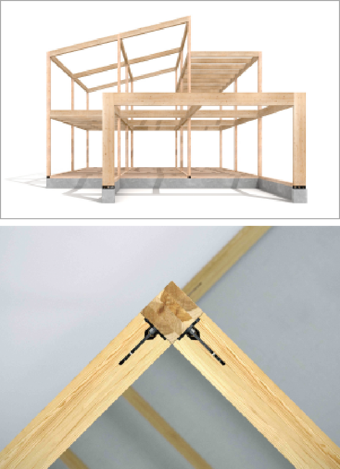 その構造の特徴は、超高層ビルを建築する時に使われる応力解析と同様の計算方法で、安定した品質と、無垢 材の1.3倍の強度を持つ集成材を、接合部1ヶ所あたり13tという高い耐久性を持つ独自のSE金物で接合 するというところにあり、頑丈な構造躯体を産み出し、耐震性や耐風性の高い安全な住宅を建築できます。